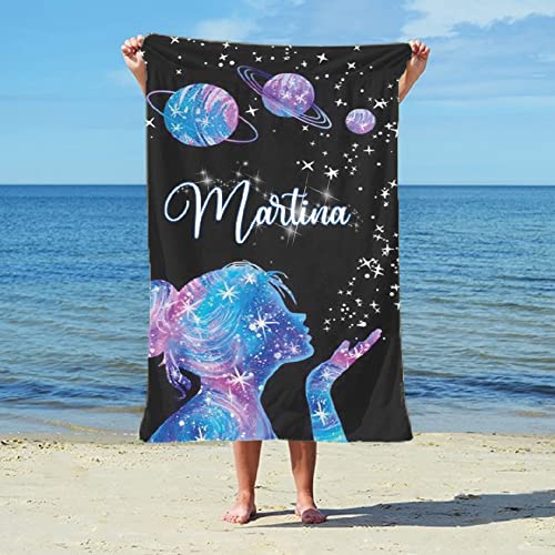Generico Ragazza cielo stellato Asciugamano Telo Mare Personalizzato Personaggi Collezione Idea Regalo Estate Piscina Vacanze assorbente bambina bambini colorato con stampa personalizzata 100x150cm