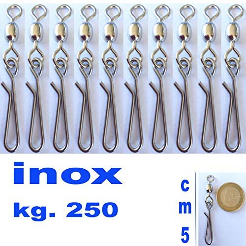 OTTIMO ATTACCO RAPIDO INOX,IDEATO PER TGLIERE ED INSERIRE AMI NELLA LENZA PER PALAMITO. CORREDATO DI GIRELLA CRANE 2/0. CONFEZIONE PEZZI 10.