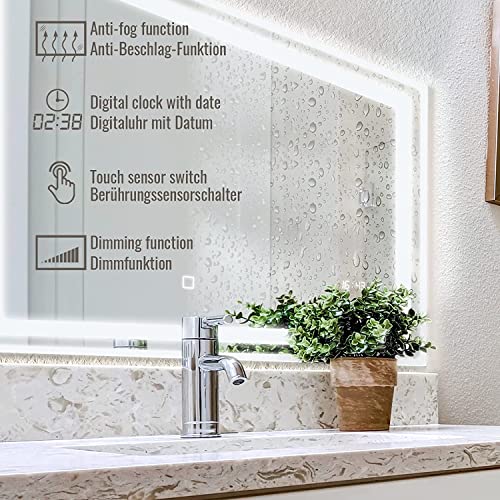 ⭐⭐⭐⭐⭐ ACCESSORI: Questo elegante specchio a LED rettangolare è dotato di un interruttore con orologio digitale con data, sensore tattile, funzione dimmer, antiappannamento e di memoria