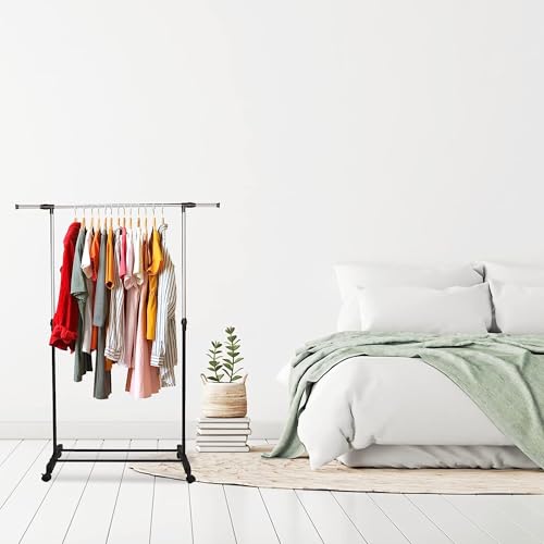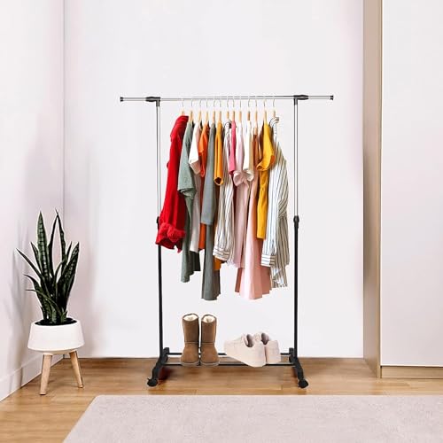 Generico Stand appendiabiti attaccapanni estensibile regolabile altezza stander con ruote da terra per abiti e scarpe