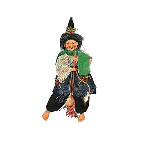 Statua decorativa della Befana delle dimensioni di 35 cm, decorazione natalizia autentica, in tessuto e feltro, cucita in modo elegante, decorata con mantello e scopina.
