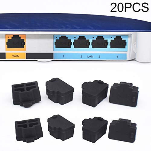 Generico Tappi Antipolvere in Silicone Proteggi Porta RJ45 Ethernet Universale Anti Dust Cover Cap Protector per Modem Router Switch Hub Scheda Madre Pc Laptop Notebook 20 Pezzi Nero