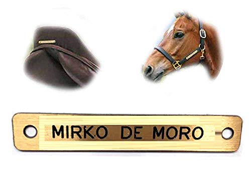 Generico Targa Ottone Sella Cavallo 7X2 CM cm Spesso 1mm 2 Fori targhetta 1 RIGO Cavezza Cavallo, Briglia, Sellino col Nome Cavallo Incisione Compresa stampatello 1 Portachiavi