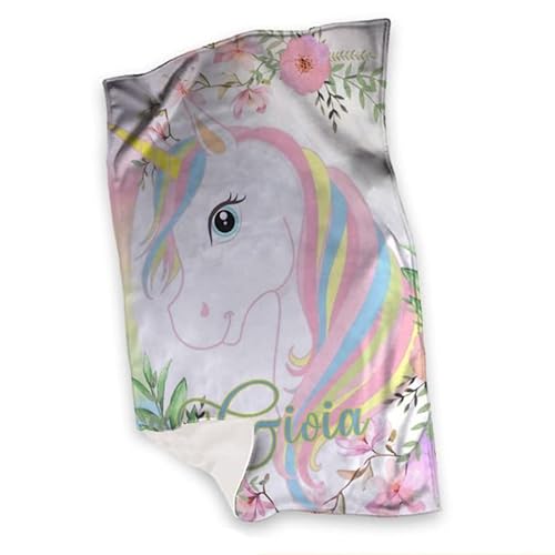 Generico Unicorno Asciugamano Telo Mare Personalizzato Personaggi Collezione Idea Regalo Estate Mare Piscina Vacanze assorbente bambina bambini colorato con stampa personalizzata nome 70x100 cm.