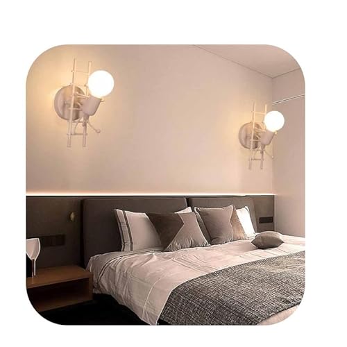 Generico UNIVERSO APPLIQUE LAMPADA DA PARETE DECORATIVA IN METALLO CON ATTACCO E27 FORMA OMINO SU SCALA BIANCO - NERO (BIANCO)