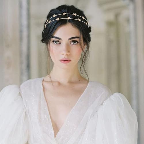Generse Cerchietto per capelli con stella lunare, con strass, corona e alone, per donne e ragazze, confezione da 1 pezzo (A)