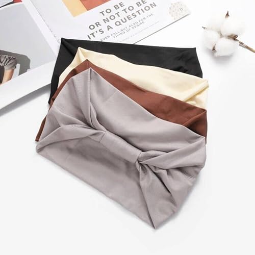 Generse Fasce larghe grigie Boho fascia per capelli elastica yoga testa sciarpe per donne e ragazze 4 pezzi