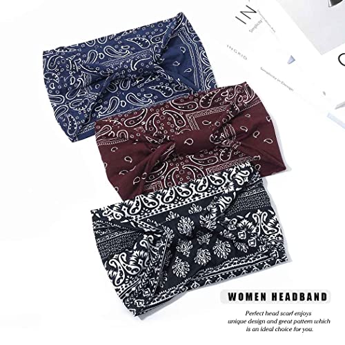 Generse Fascia larga per capelli Boho Head Foulard Band con nodo floreale elastico turbante vintage per donne e ragazze (confezione da 3)