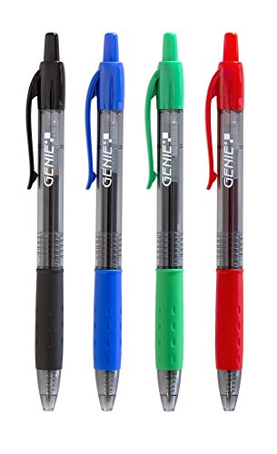 12 pezzi Genie Penna a sfera con gel roller, quattro diversi colori in una scatola tipo set: 4 X nero, 4 X blu, 2 X rosso e 2 X verde (singolarmente rimovibili).
