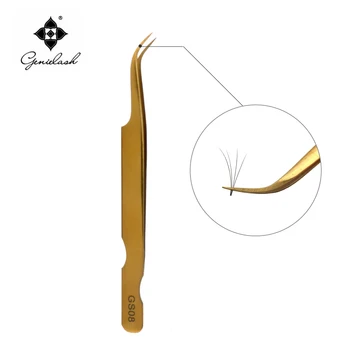 Genielash GS08 HONORABLE GOLDEN CURVED TWEEZERS Tools Especially for 3D Volume Mink Eyelash extension Lashes Free shipping