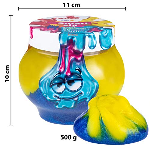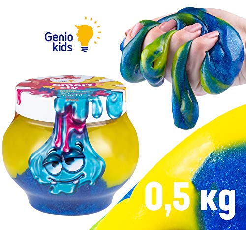 GenioKids Mega Slime kit 0.5 kg melma Slime XXL in 2 colori, Slime per bambini (giallo e blu)