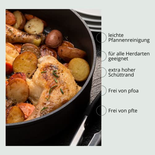 Genius Cerafit Plasma Padella con bordo alto 28 cm + coperchio in vetro - Padella in ceramica resistente al forno con capacità 4,2 l + bordo alto | Padella con manico rimovibile per tutti i piani