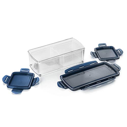 Genius Nicer Dicer Fusion Smart (6 pezzi) in blu zaffiro, con coperchio salvafreschezza (1 x 1,25 l e 2 x 0,4 l), contenitore di raccolta