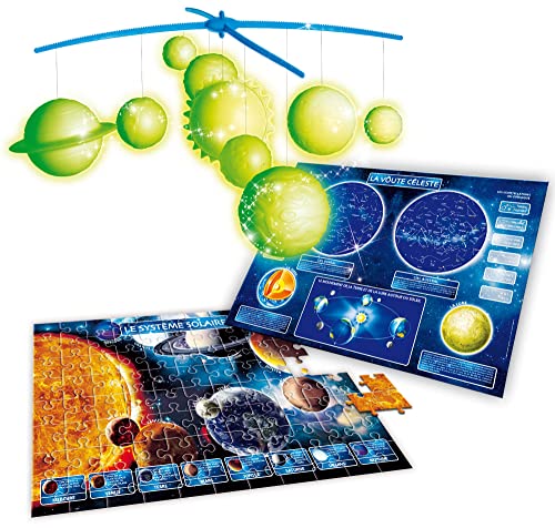 Planeti in plastica che brillano al buio, puzzle double face, manuale riempito di illustrazioni