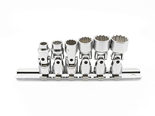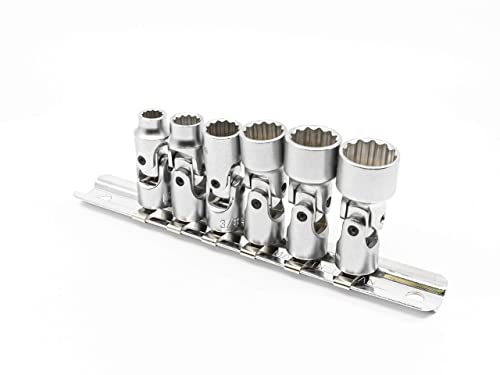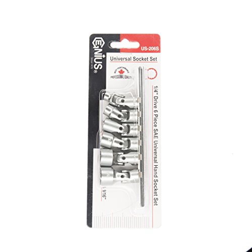 Genius Tools Set di 6 chiavi a bussola universali SAE da 1/4" (12 punti), finitura opaca, US-206S