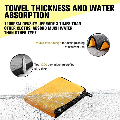 ✔Soluzione Completa per i Dettagli Dell'auto: Ogni asciugamano in microfibra è disponibile in due colori diversi. La superficie grigia soffice è molto utile per la pulizia dello sporco. Dopo la pulizia, utilizzare la superficie gialla soffice e soffice per pulire l'auto, rendere la vostra auto nuova. Diversi colori su entrambi i lati aiutano a distinguere diversi usi.