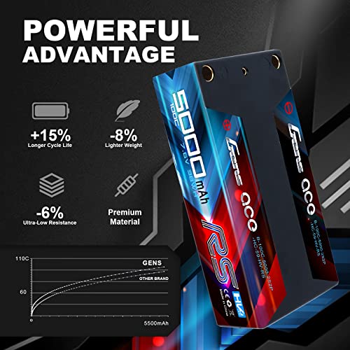 Gens Ace 5000mAh 7.6V HV100C 2S2P HardCase Shorty Lipo59
