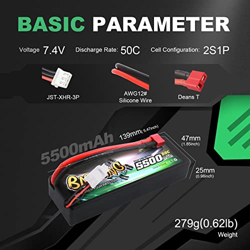 Gens ace 2S lipo Batteria 5500mAh 7.4V 2S1P 50C RC Batteria serie Bashing con connessione Deans T, per la maggior parte delle auto RC in scala 1/8,1/10