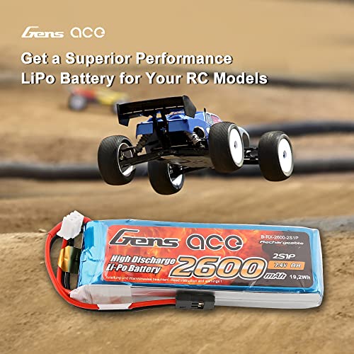 Gens ace Lipo Pack batteria da 2600 mAh, 7,4 V, 2S1P, per modellismo, RC Heli, veicoli per barca, FPV, auto, elicottero, giocattolo come Sanwa MT4 / M11X / M12, Futaba T6J / T8FG 12FG