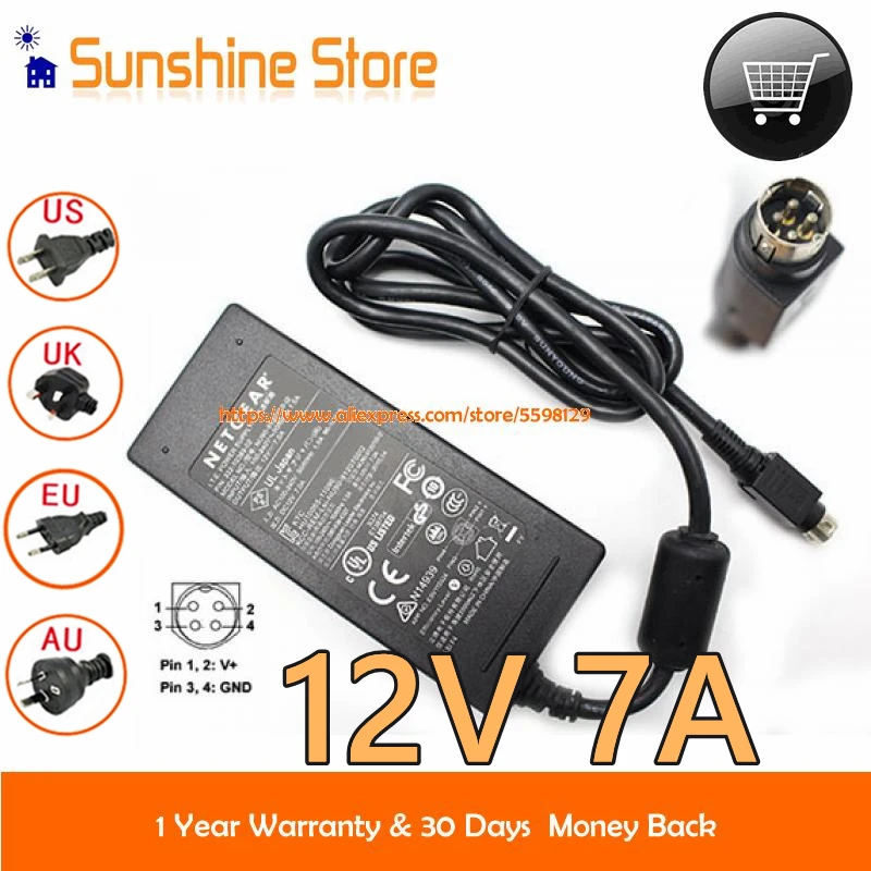 Genuine Netgear NAS RN 10400 Adapter NU90-9120700-I2 330-10363-02 12V 7.0A 84W PSU Charger Laptop Power Supply Round with 4 Pin