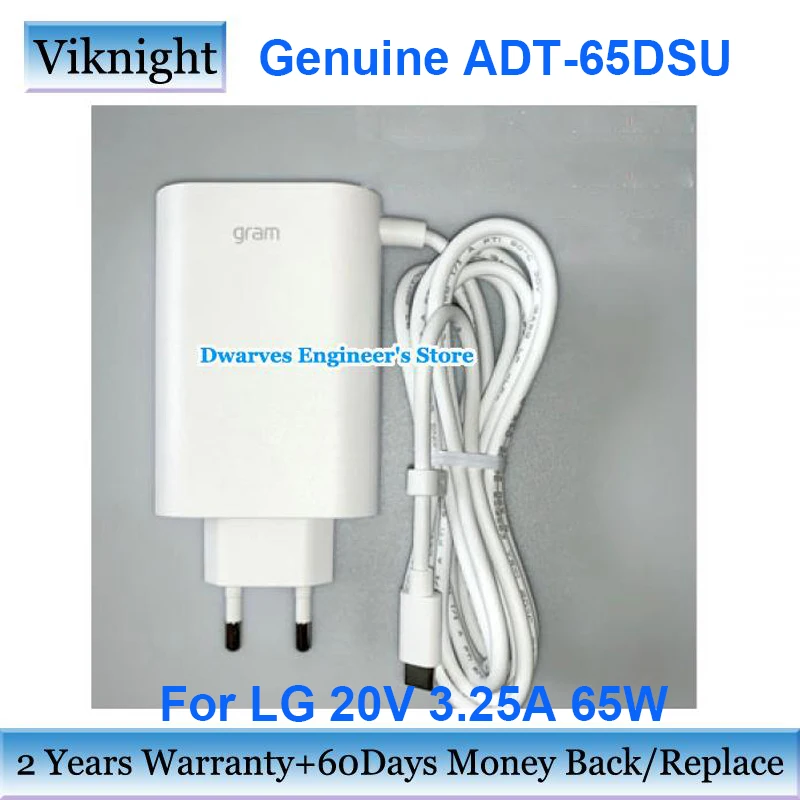 Genuine White ADT-65FSU-D03-EPK 20V 3.25A EU Adapter Charger For LG HU10967-20029RR-HR3-ADT-65DSU Laptop Power Supply Type C