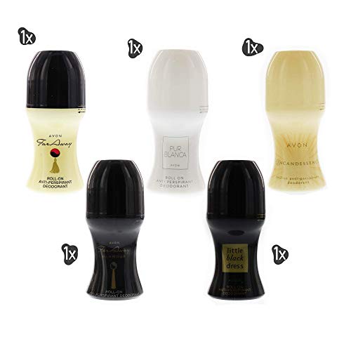 Genussleben Avon Deoroller Mix casuale con Far Away, Pur Blanca, Incandessence, Little Black Dress - una scelta tra diversi set di fragranze e 1 articolo a sorpresa di alta qualità da donna