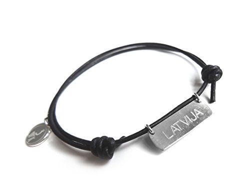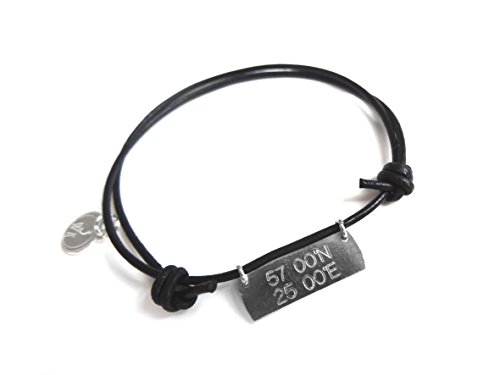Geographic coordinate braccialetto in argento Sterling 925, corda in pelle