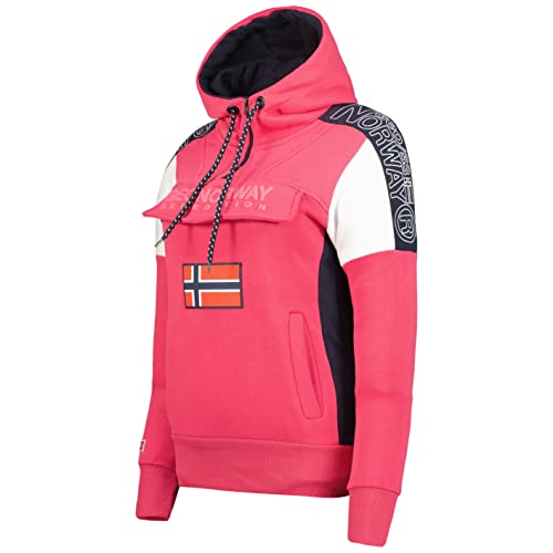 Geographical Norway Fago Lady Hood - Felpa Donna Cappuccio E Tasche - Felpa Casual Maniche Lunghe Calda - Abito Ideale Donna Stagione Autunno Inverno Primavera (Rosa Flash XL-Taglia 4)