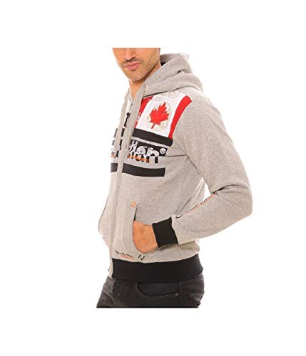 Geographical Norway Felpa Face Maglia Maniche Lunghe Uomo Zip Cappuccio SA917h/CP (Grigio, S)
