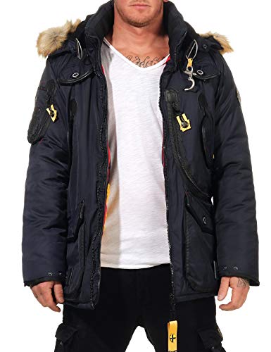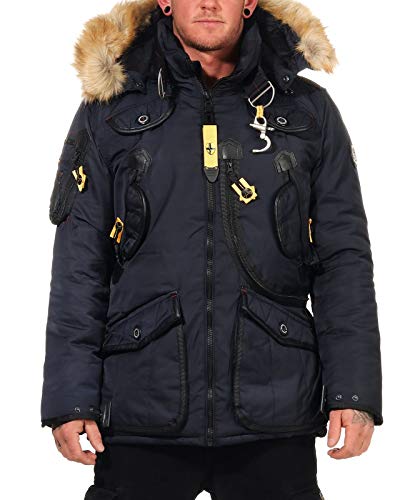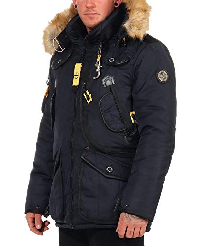 Geographical Norway - Giacca Invernale da Uomo Agaros con Grande Cappuccio in Pelliccia Sintetica (Marino, S)