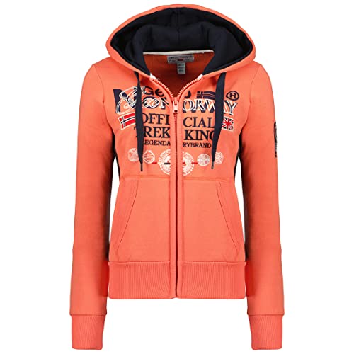 Geographical Norway Gladys Lady - Felpa da donna con cappuccio e tasche a canguro - Felpa da donna Casual a manica lunga calda (Corallo S Taglia 1)