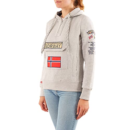Geographical Norway GYMCLASS LADY - Felpa Con Cappuccio E Tasche Da Donna Casual - Felpa Logo Donna - Maniche Lunghe Comfort - Felpa Cappuccio Cotone Sportivo (GRIGIO CHIARO L - TAGLIA 3)