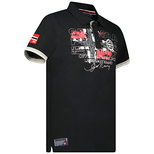 Geographical Norway Kutta Men - Polo Shirt Uomo Stampato - Cotton Button Down Maniche Corte Uomo - Casual Shirt Tops Regular Fit Style Classic Nero XL
