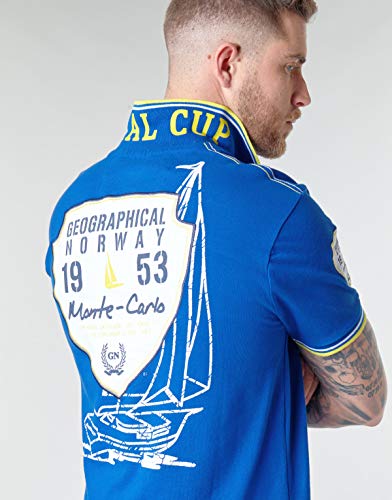 Geographical Norway Polo da Uomo con Logo in Gomma Impressions Chest, Back & Sleeve Embroidery Collar Buttons (Blu Reale, M)