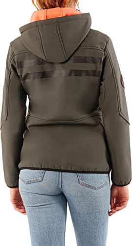 Geographical Norway REINE Lady - Giacca/Softshell Donna Giacca antivento resistente e impermeabile - Giacca con cappuccio Outdoor, Grigio/Arancione, S