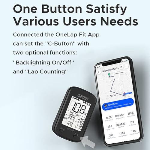 【Design "pulsante C" personalizzato】 Collegato all'app OnelapFit, il CC400 può essere personalizzato per impostare il "pulsante C" con due funzioni opzionali: "Retroilluminazione On/Off" e "Conteggio giri". Un pulsante soddisferà le tue diverse esigenze.