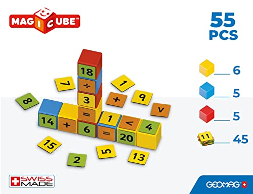 Geomag, Magicube Math Building Clips, Giochi Magnetici Adatti per Bambini a Partire da 3 Anni, Set per Imparare la Matematica, Confezione da 55 Pezzi
