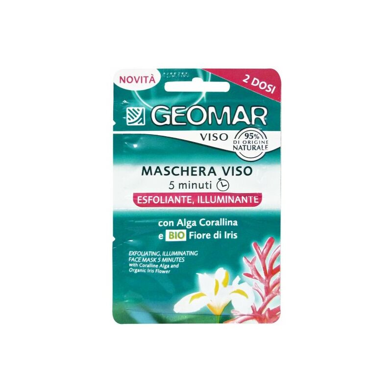 Geomar maschera viso 5 minuti esfoliante, illuminante dosi 2 x 7,5ml.alga corallina e bio fiore di iris