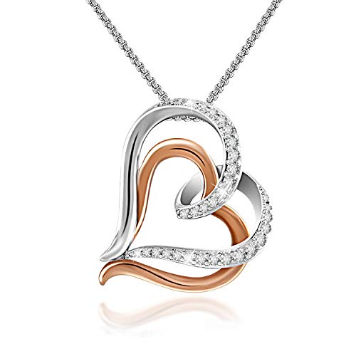 GEORGE · SMITH Collana Donna Argento Ciondolo Collana Cuore con Zirconi - Design Doppio Cuore - Processo Placcato in Oro Rosa e Oro Bianco - con Scatola di Gioielli