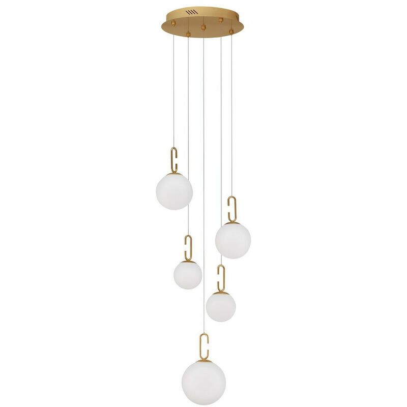 Merano Georgia Plafoniera LED Integrata a Sospensione Metallo Oro Satinato, Vetro Bianco Opale LED 37W 3147Lm 3000K | Finitura: oro satinato, bianco | Materiale: metallo, vetro | Classificazione IP: IP20 | Altezza minima: 30 cm | Altezza massima: 180 cm | Diametro: 42 cm | Tipo di lampada: LED integrato | Lampadina inclusa: Sì | Dimmerabile: Sì | Kelvin: 3000 K | Lumen: 3147lm | Peso: 5,7 kg | Potenza (massima): 30,49 W