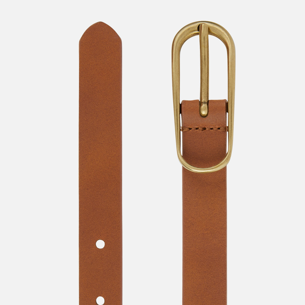 Cintura donna dal fascino contemporaneo, perfetta dall'ufficio agli appuntamenti del tempo libero. Cintura donna dal fascino contemporaneo, perfetta dall'ufficio agli appuntamenti del tempo libero. Caratterizzata da una fibbia ovale in metallo, è realizzata in pelle liscia ed è qui presentata in una versatile tonalità marrone chiaro. Raffinata ma al contempo quotidiana, è un accessorio immancabile nel guardaroba casual-chic ed è adatta in tantissime occasioni. Accessori metallici con finitura oro scuro. Altezza: 2 cm.
