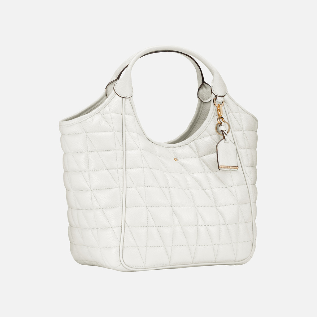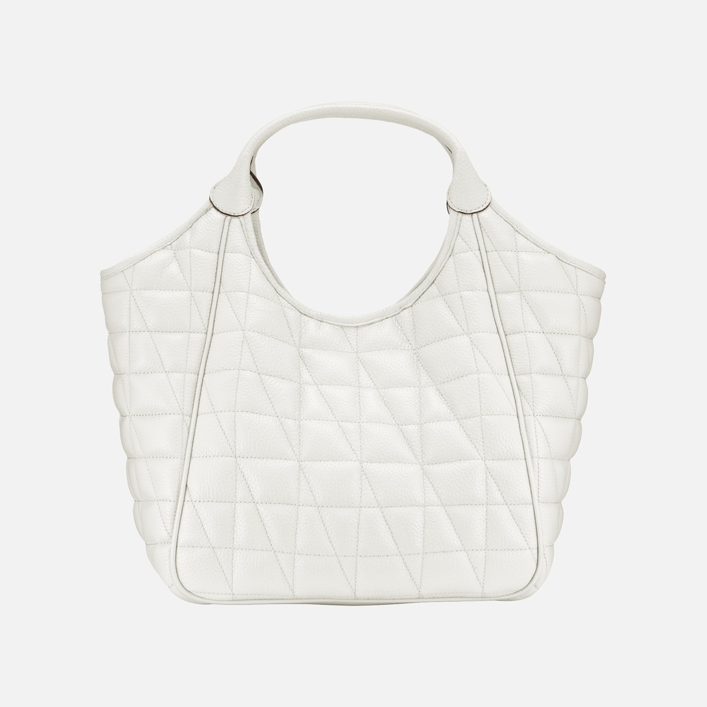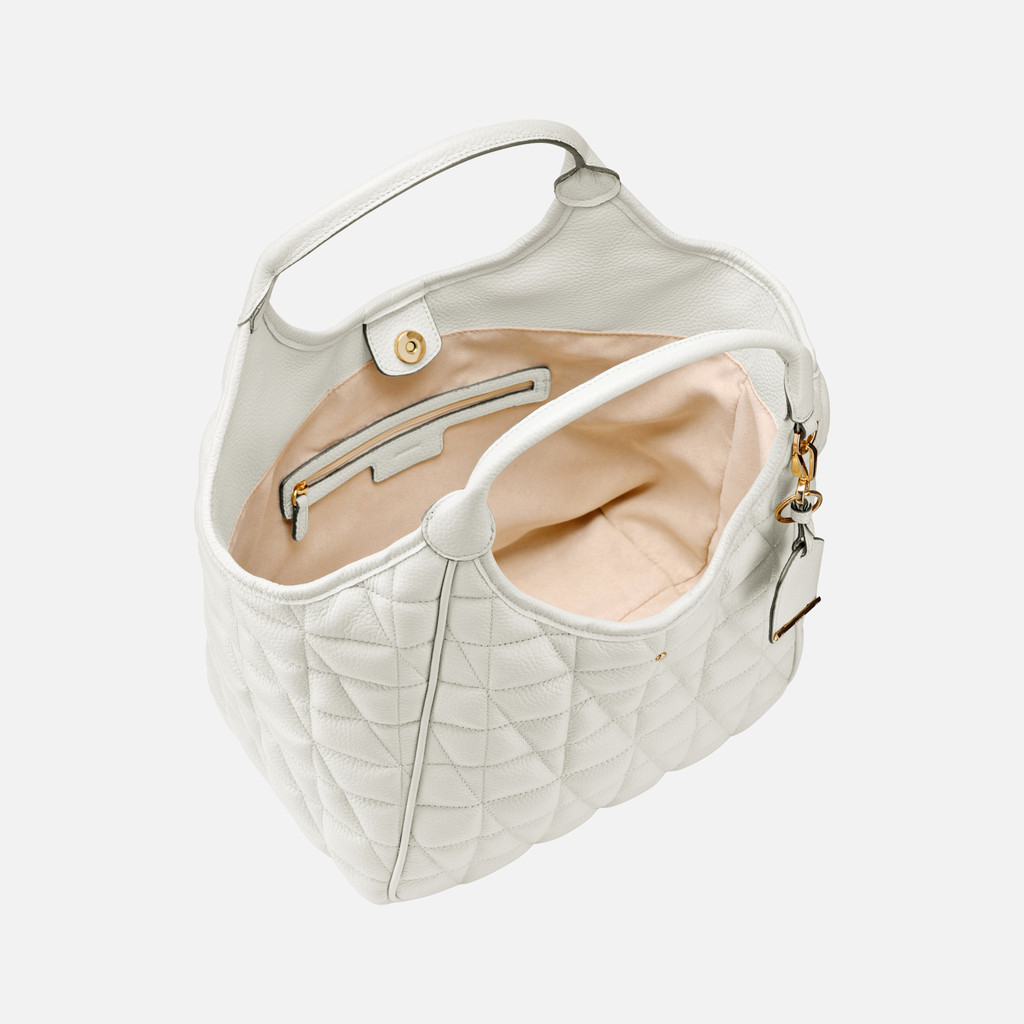 Maxi borsa hobo donna dall'allure raffinata, che combina estetica impeccabile e funzionalità. Maxi borsa hobo donna dall'allure raffinata, che combina estetica impeccabile e funzionalità. Dotata di doppio manico, è proposta in morbida pelle bottalata con lavorazione matelassé, qui presentata in una luminosa versione bianca. Con il suo accattivante design dallo stile classico rivisitato, Demethri completa con una nota elegante i business look e gli outfit cittadini quotidiani. Indosso a mano. Chiusura con bottone magnetico. Doppio manico. Due tasche interne. Portachiavi removibile con targhetta in pelle. Dimensioni: L 43 cm x W 19 cm x H 32 cm.