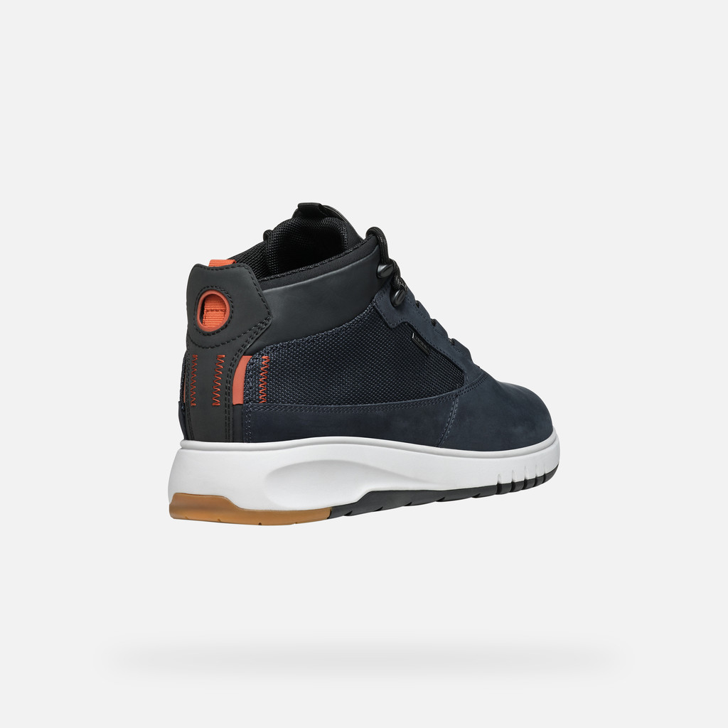 Stivaletto uomo allacciato, impermeabile e super traspirante, dal look tecnico e grintoso. Stivaletto uomo allacciato, impermeabile e super traspirante, dal look tecnico e grintoso. Qui in una trasversale tonalità blu navy, è perfetto per le gite fuori porta, grazie alla sua tomaia con dettagli hiking realizzata in pelle pull up e tessuto. Progettato per il tempo libero e adatto anche in caso di maltempo, Aerantis™ 4X4 ABX sfoggia un design d'ispirazione active innovativo e versatile.