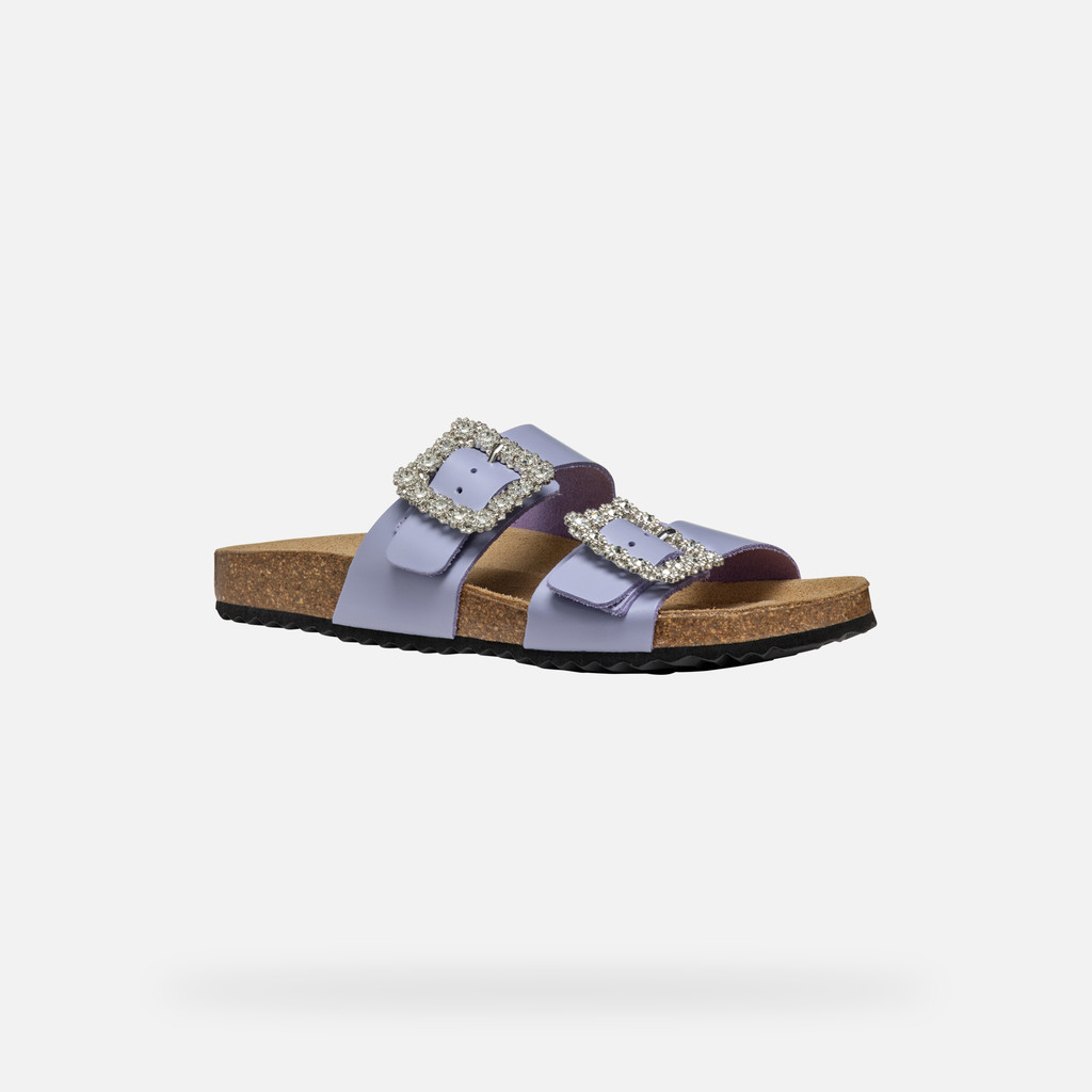 Leggero sandalo donna dal dna contemporaneo che fonde stile glamour, comfort e traspirabilità. Leggero sandalo donna dal dna contemporaneo che fonde stile glamour, comfort e traspirabilità. Qui declinato in una sfiziosa tonalità lilla, vanta una tomaia in morbida nappa impreziosita da fibbie metalliche con strass. Perfetto alleato per le giornate cittadine, Brionia è pensato per illuminare i look casual quotidiani con un tocco davvero unico.