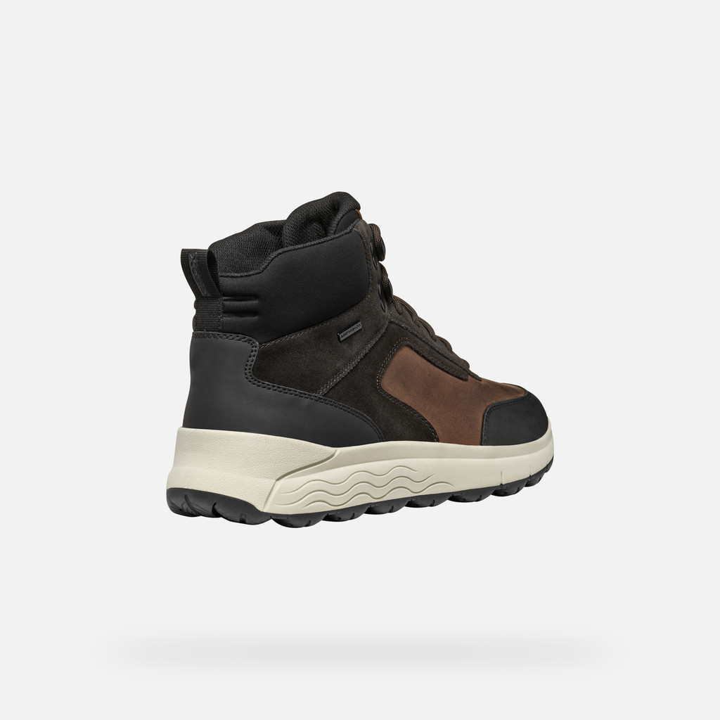 Stivaletto uomo impermeabile, che fonde attitudine sportiva e stile casual contemporaneo. Stivaletto uomo impermeabile, che fonde attitudine sportiva e stile casual contemporaneo. Qui declinato in una raffinata tonalità testa di moro, vanta una tomaia realizzata in pelle pull up e scamosciato arricchita da dettagli hiking. Ideale sia in città che nel tempo libero, Spherica™ 4x4 ABX garantisce piedi asciutti ed eccellente ammortizzazione anche sotto la pioggia intensa.