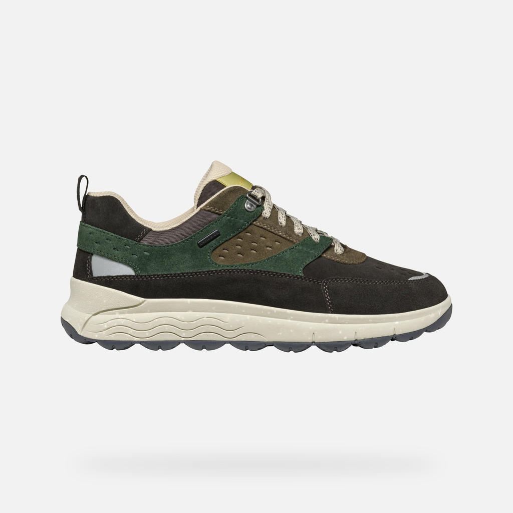 Sneaker uomo impermeabile e super ammortizzata, dal design urban di ispirazione running. Sneaker uomo impermeabile e super ammortizzata, dal design urban di ispirazione running. La sua particolare tomaia in scamosciato gioca con i contrasti ed è qui declinata in una variante versatile ma d'impatto che accosta testa di moro e verde scuro. Garanzia di una camminata leggera e confortevole, Spherica™ 4X4 ABX è perfetta per affrontare con slancio anche le giornate di pioggia intensa.