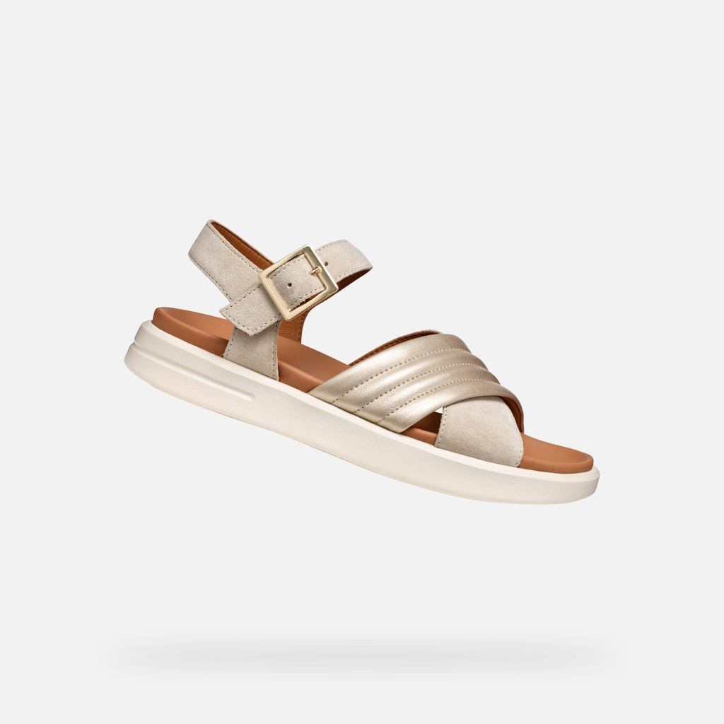 Leggero e traspirante sandalo donna dallo stile quotidiano, perfetto per completare i look casual. Leggero e traspirante sandalo donna dallo stile quotidiano, perfetto per completare i look casual. Realizzato in un mix di scamosciato e materiale effetto pelle perlata, è qui proposto in una raffinata versione che accosta taupe chiaro e oro chiaro. Dotato di una suola flessibile di ispirazione active, Xand 2S™ è l'ideale nelle giornate più calde, poiché assicura benessere per tutto il giorno.