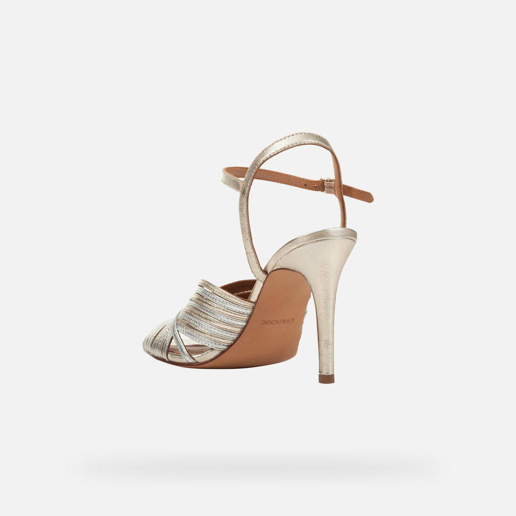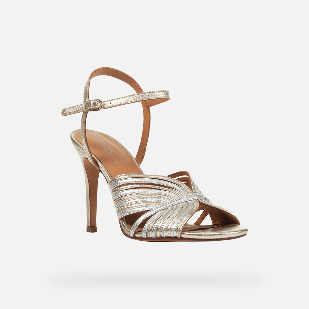 Luminoso sandalo donna con tacco alto a stiletto, dall'allure femminile e dal fascino raffinato. Luminoso sandalo donna con tacco alto a stiletto, dall'allure femminile e dal fascino raffinato. La sua elegante tomaia, dalle reminiscenze retro, è realizzata in pelle metallizzata ed è qui declinata in una versione che accosta oro e argento. Leggero e traspirante, Zaffiria è perfetto per completare i look delle occasioni speciali e arricchire gli outfit delle serate cittadine più glamour.