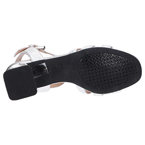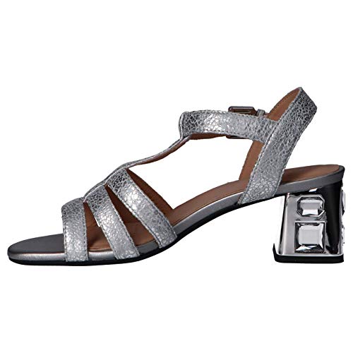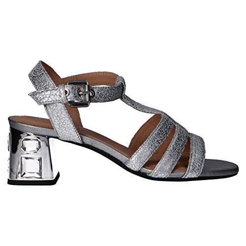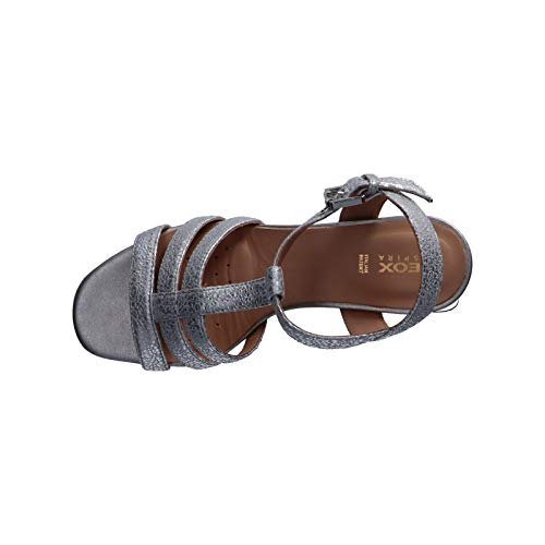 Geox D Seyla Sandal Mid Plus Chiusura a T Donna, Argento (Silver C1007), 37