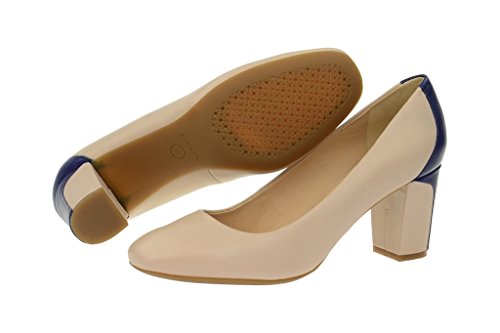 Geox Symph.Mid Pumps D32W2A - Pompa, in vera pelle, con tacco da circa 10 cm, colore: beige e blu, beige., 39 EU